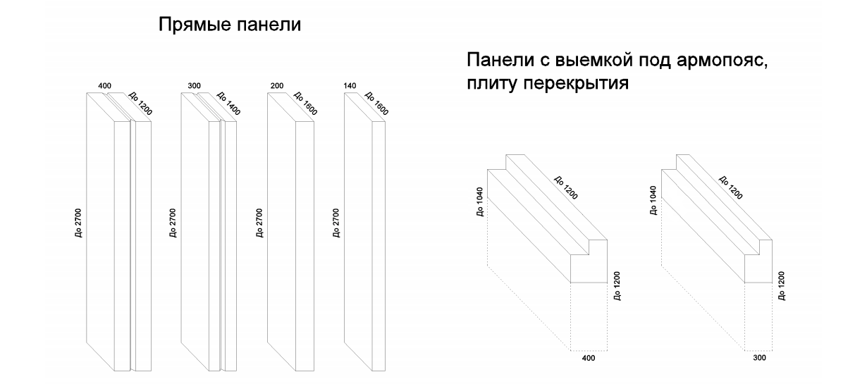 Доступная толщина панелей: 400 мм, 300 мм, 200 мм, 140 мм